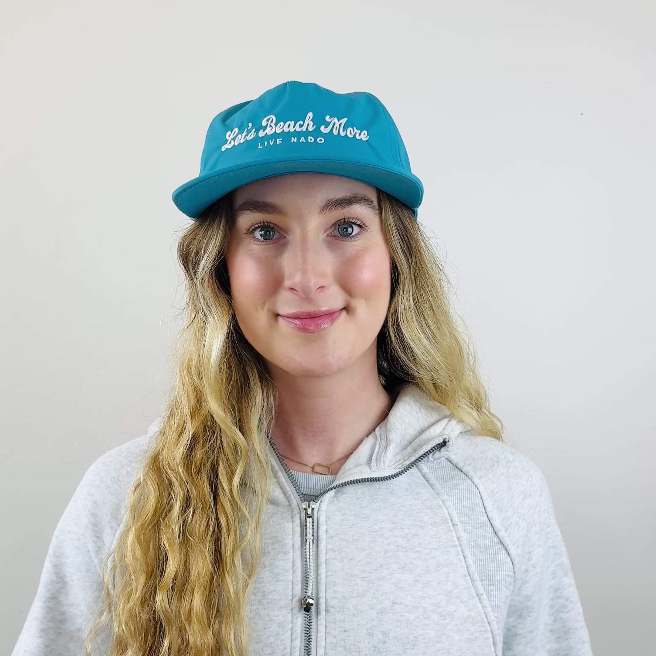 The Let’s Beach More surf cap is your new go-to for all things sun, sand, and sea. Made with quick-dry nylon and an adjustable brim that can go flat or curved, this hat is built for beach days, surf checks, and salty air adventures.